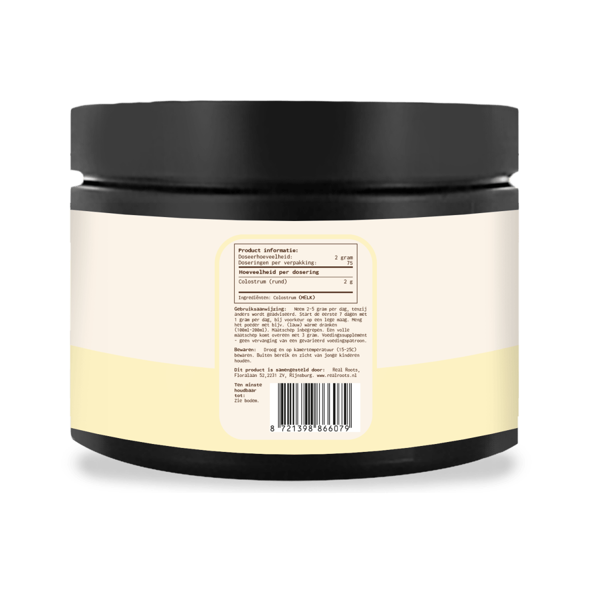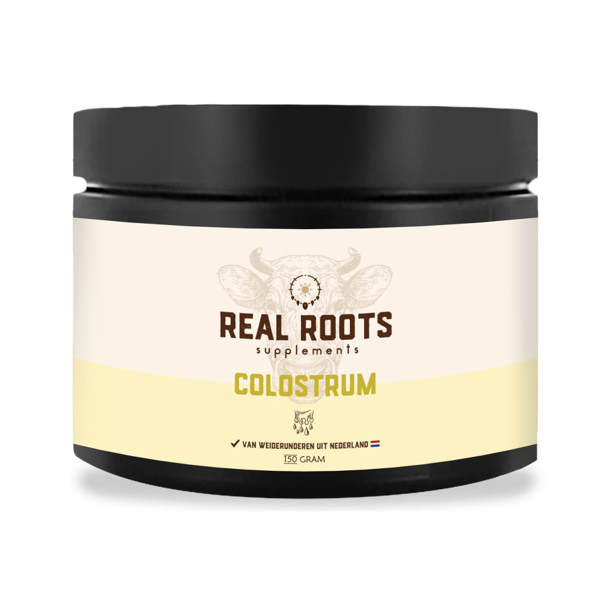 een koe produceert na de geboorte van haar kalf. Hoewel colostrum meerdere dagen aanwezig blijft, gebruikt Real Roots uitsluitend de melk uit de eerste 24 uur.