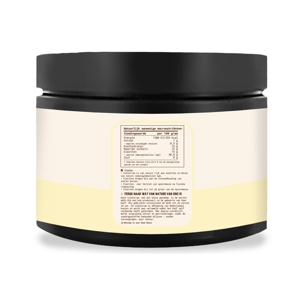 Deze colostrum is van nature rijk aan essentiële aminozuren en bevat immunoglobulinen, die van nature in colostrum voorkomen. De colostrum is afkomstig van Nederlandse koeien en wordt pas verzameld nadat het kalf